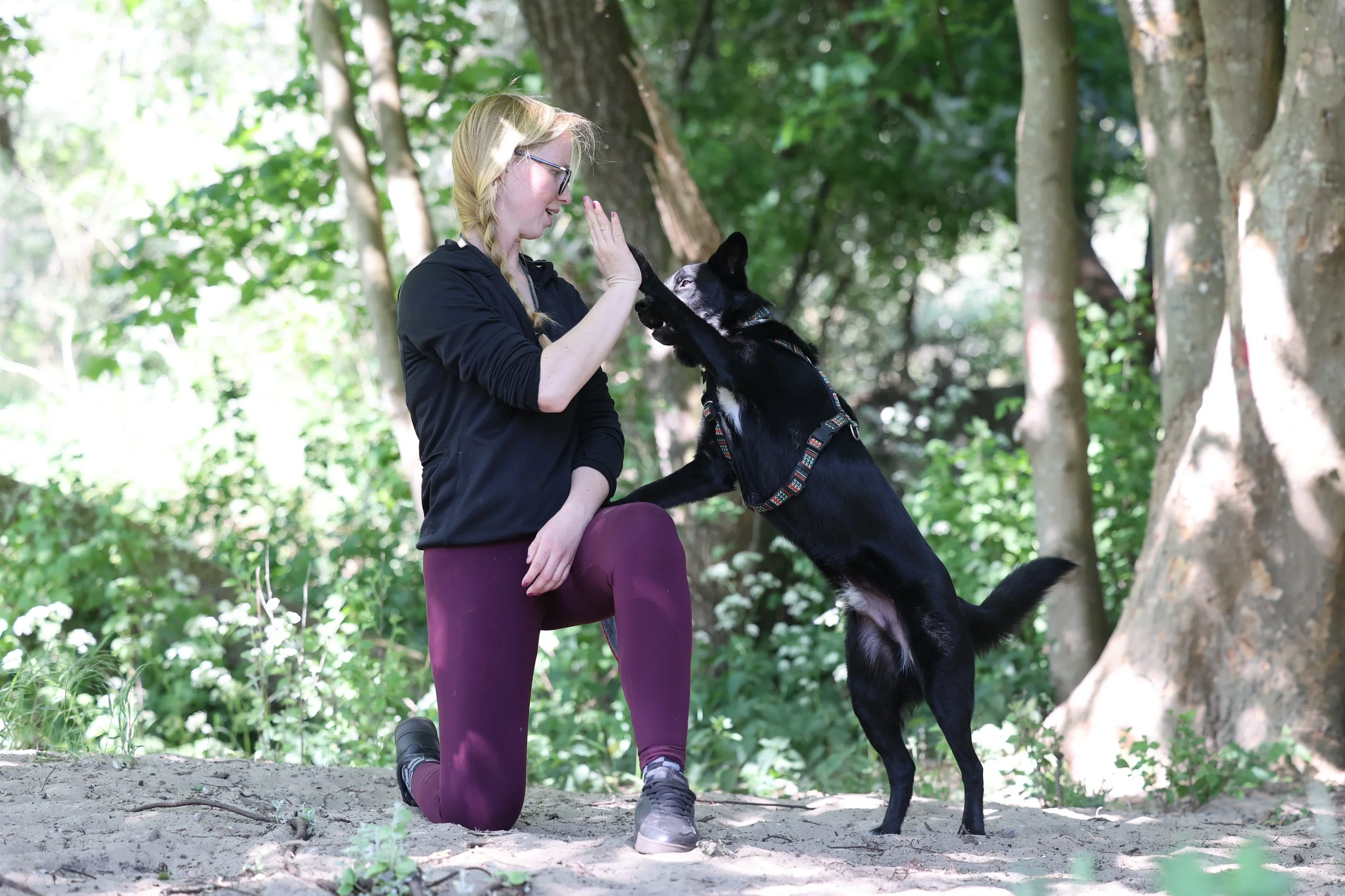 Van daaruit nemen we de tijd. We vertragen, luisteren en kijken met aandacht naar wat er speelt, zonder oordeel en zonder haast. Niet om iets recht te zetten, maar om te begrijpen wat er nodig is om weer ruimte en veiligheid te laten ontstaan, voor de hond én voor de mens achter de hond.
