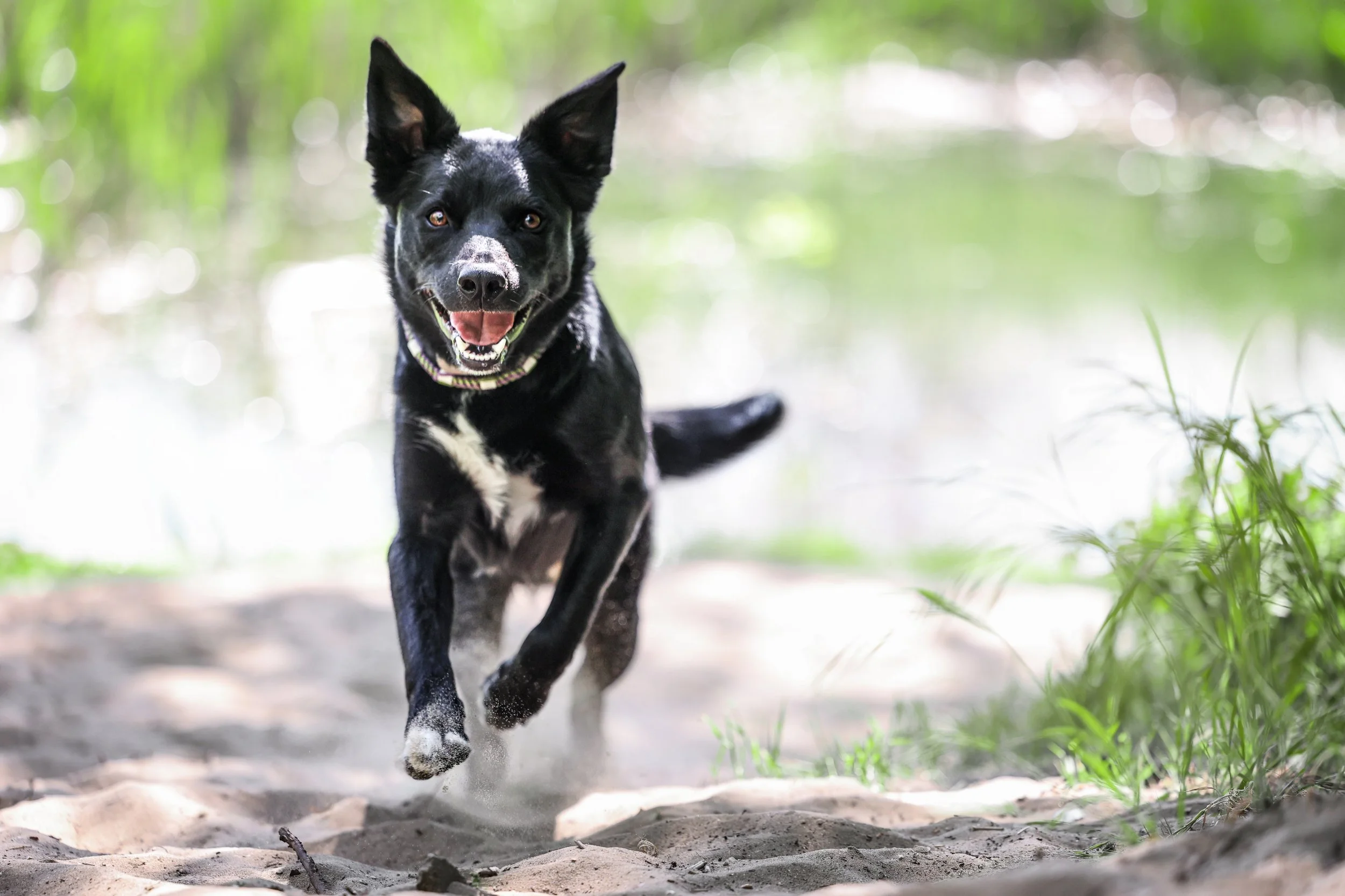 Waar Marley mij leerde vertragen, kwam Raven binnen met een andere energie. Letterlijk. Hij kwam niet zachtjes binnengewandeld. Hij kwam rennend, kijkend, reagerend en – vooral wanneer hij enthousiast is – luid aankondigend dat hij aanwezig is. Raven is scherp, snel en altijd een paar stappen vooruit. Hij voelt spanning voordat ik het zelf doorheb en laat direct weten wat hij ergens van vindt. Subtiel is niet zijn eerste taal. Eerlijkheid wel.